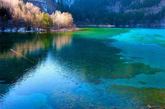 鏡海一平如鏡,故得其名。它就像是一面鏡子,將地上和空中的景物毫不失真地復(fù)制到了水里,其倒影獨(dú)霸九寨溝。